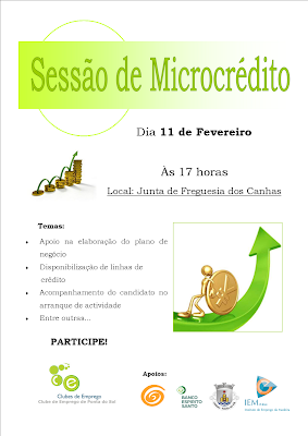 Realiza-se esta sexta-feira, dia 11 de Fevereiro pelas 17:00 uma sessão sobre Microcrédito na Junta de Freguesia dos Canhas. A sessão conta com presença do Gerente do BES José Franco... Ler mais →