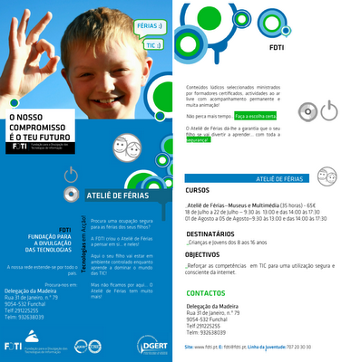 ATELIÊ DE FÉRIAS FDTI Procura uma ocupação segura para as férias dos seus filhos? A FDTI criou o Ateliê de Férias a pensar em si… e neles! Aqui o seu filho vai estar em... Ler mais → Junho 3, 2011 Élio Pereira Sem comentários FDTI