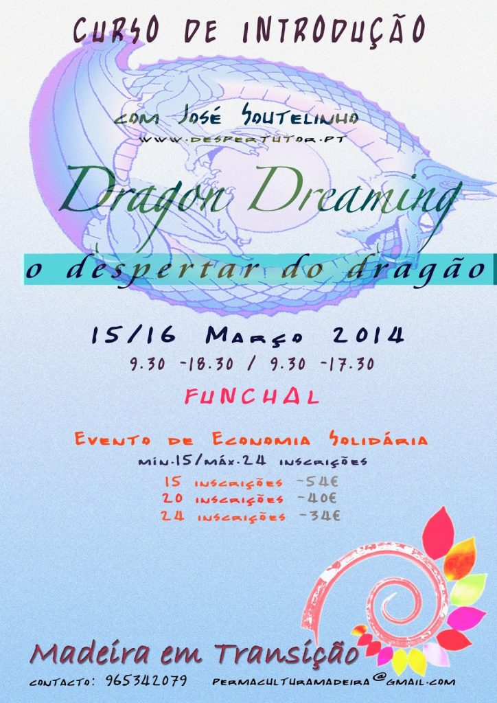 CURSOS DE PERMACULTURA E DRAGON DREAMING Clique AQUI para obter mais informações sobre o Dragon Dreaming. Fevereiro 28, 2014 Élio Pereira Sem comentários Uncategorized