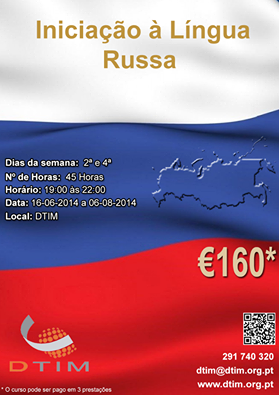Local: DTIM Nº de Horas: 45 h Público-Alvo: Interessados em línguas estrangeiras. Breve Descrição do Curso: Dotar os formandos de competências básicas para a utilização da língua Russa, no seu... Ler mais →