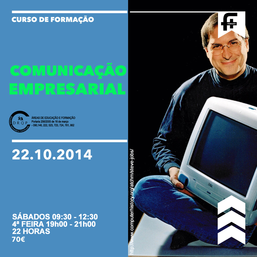 CURSO DE COMUNICAÇÃO EMPRESARIAL A ação de formação sobre COMUNICAÇÃO EMPRESARIAL transmite os conhecimentos, técnicas e ferramentas essenciais para poder criar uma marca forte e positiva. A comunicação assume um papel determinante na... Ler mais → Outubro 7, 2014 Élio Pereira Sem comentários Formar Mais