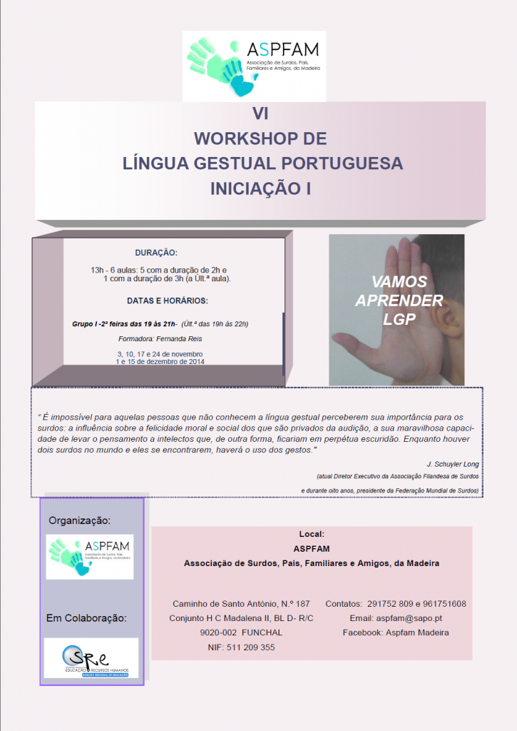 VI WORKSHOP DE LÍNGUA GESTUAL PORTUGUESA – INICIAÇÃO I