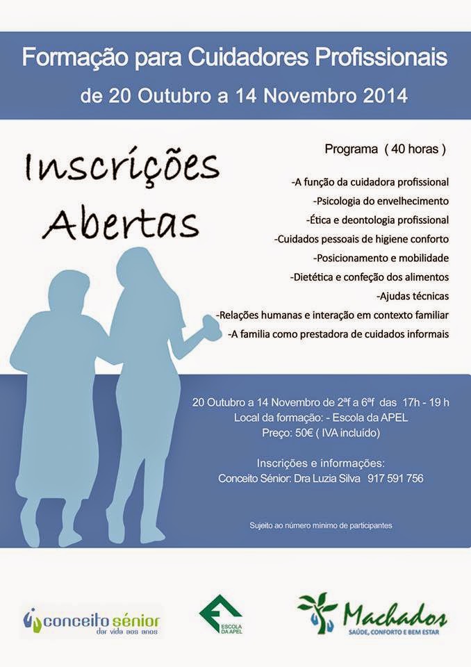 FORMAÇÃO PARA CUIDADORES PROFISSIONAIS – APEL Outubro 17, 2014 Élio Pereira Sem comentários APEL, Conceito Sénior