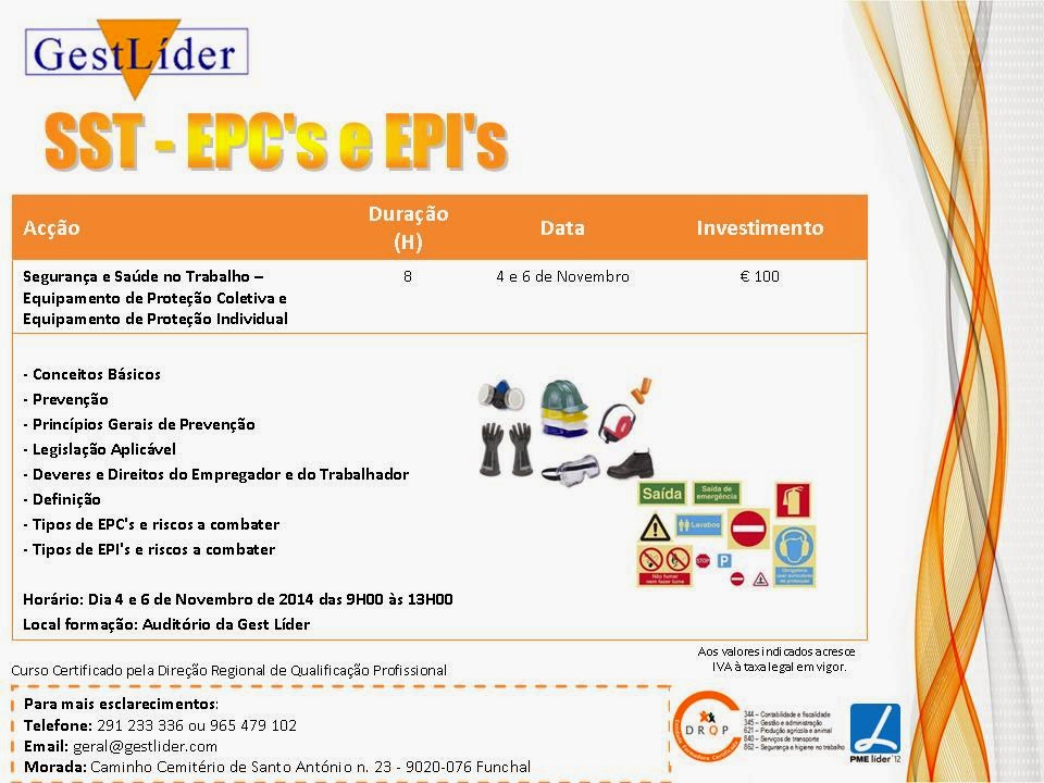 FORMAÇÃO SEGURANÇA E SAÚDE NO TRABALHO – EPI’S Formação Segurança e Saúde no Trabalho - Equipamentos de Proteção Coletiva e Equipamentos de Proteção Individual a iniciar próximo dia 4 de Novembro de 2014. FICHA DE INSCRIÇÃO Outubro 29, 2014 Élio Pereira Sem comentários Gestlider