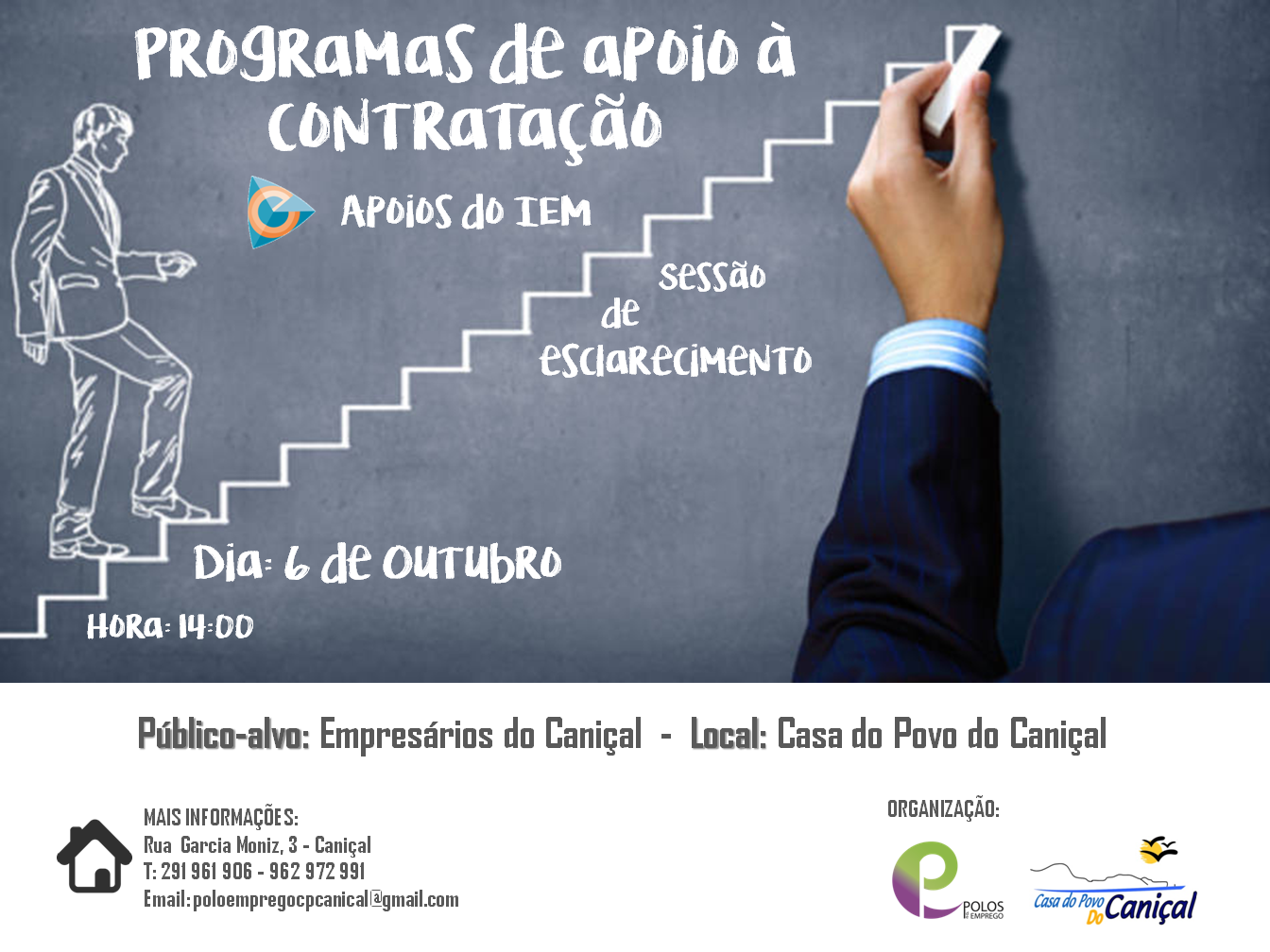 O Polo de Emprego da Casa do Povo do Caniçal irá realizar, no próximo dia 6 de outubro, uma sessão de esclarecimentos sobre os Programas de Apoio à Contratação, disponibilizados... Ler mais →