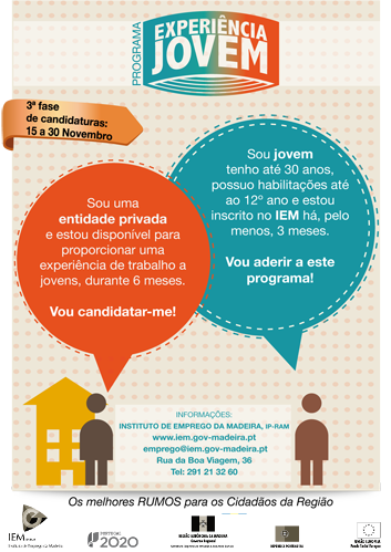 Decorre até 30 de novembro a 3ª fase de candidaturas do Programa Experiência Jovem. Objetivos: Facultar aos jovens uma experiência profissional em contexto real de trabalho; Permitir que as pessoas... Ler mais →