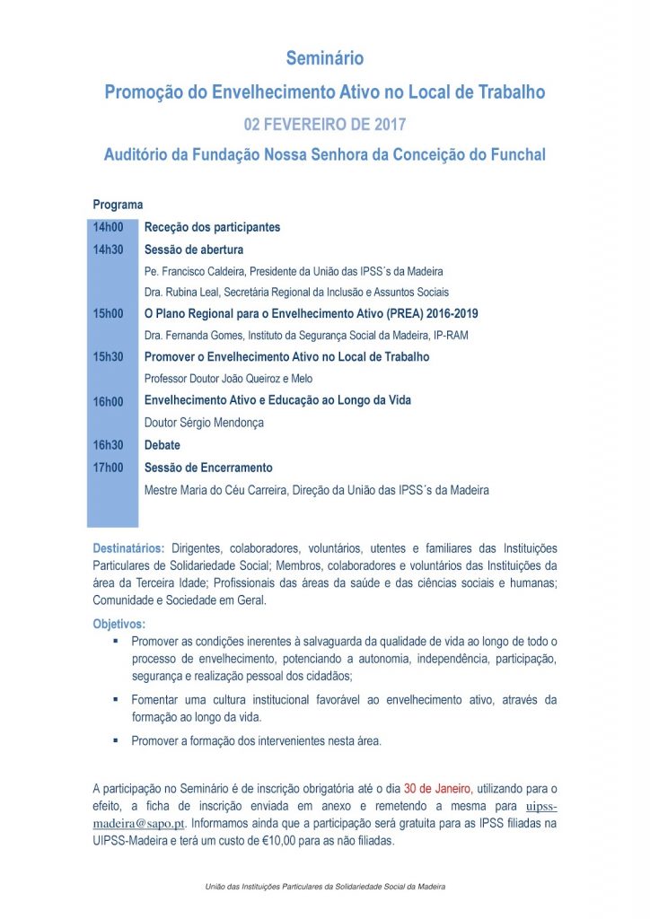 SEMINÁRIO: PROMOÇÃO DO ENVELHECIMENTO ATIVO NO LOCAL DE TRABALHO FICHA DE INSCRIÇÃO Janeiro 26, 2017 Élio Pereira Sem comentários Uncategorized