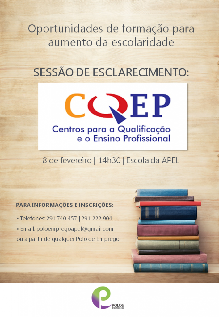 Sessão de esclarecimento sobre oportunidades de formação para aumento da escolaridade, no próximo dia 8 de fevereiro, pelas 14h30, na Escola da APEL.