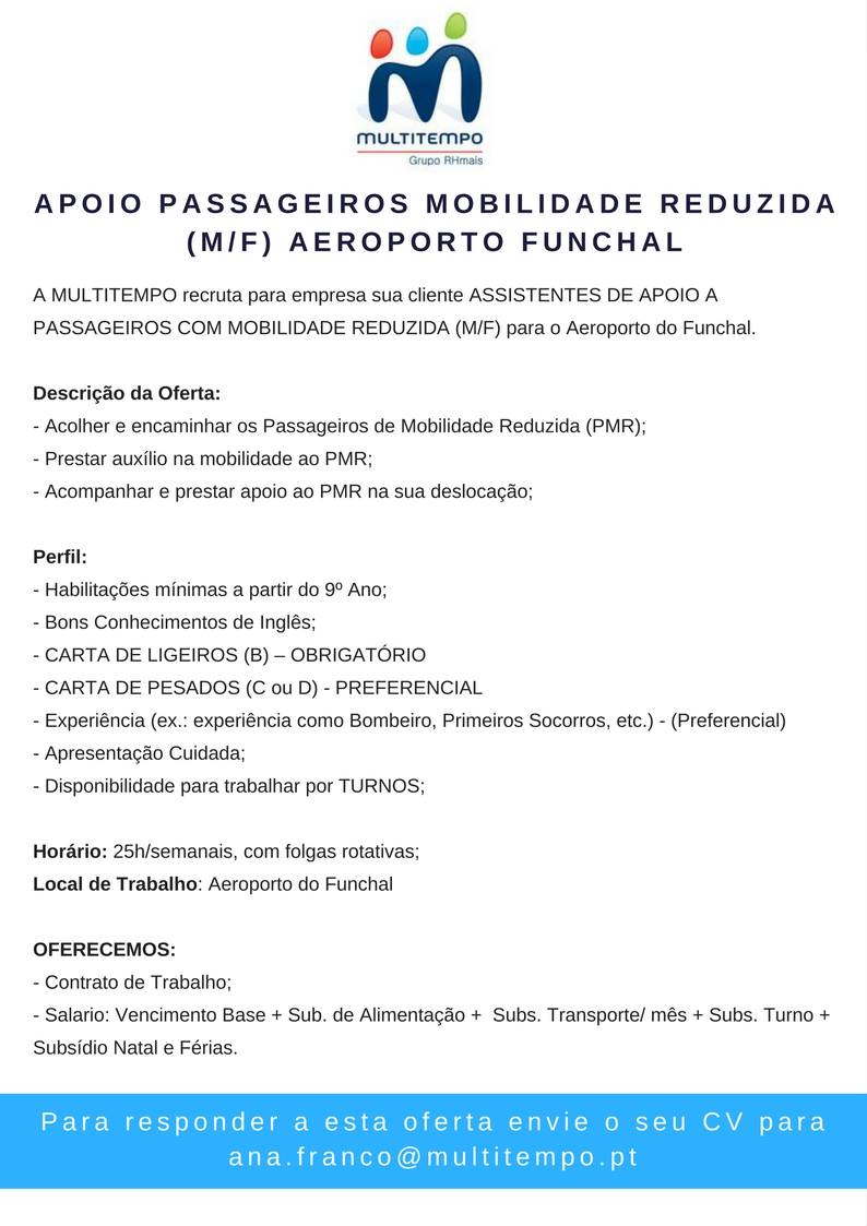 Assistentes de Apoio a Passageiros com Mobilidade Reduzida (M/F) - Aeroporto da Madeira.