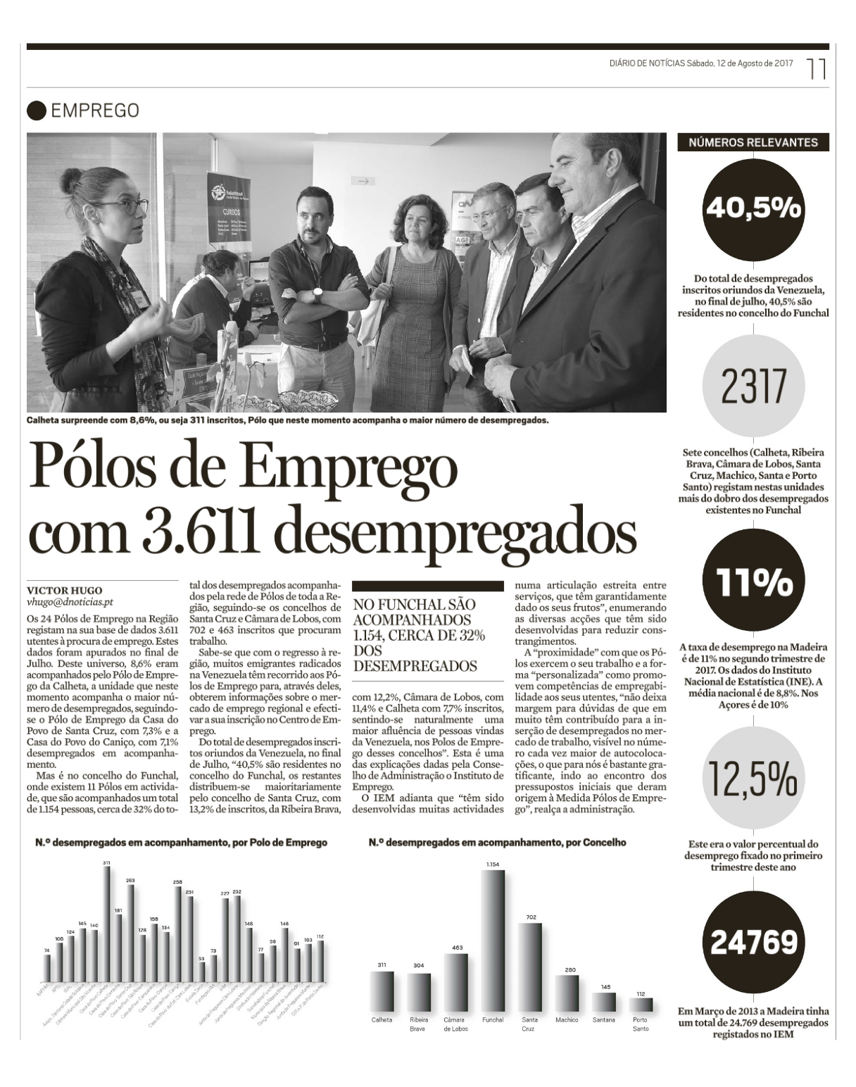 Os 24 Pólos de Emprego na Região registam na sua base de dados 3.611 utentes à procura de emprego. Estes dados foram apurados no final de Julho. Deste universo, 8,6% eram acompanhados pelo Pólo de Emprego da Calheta, a unidade que neste momento acompanha o maior número de desempregados, seguindo-se o Pólo de Emprego da Casa do Povo de Santa Cruz, com 7,3% e a Casa do Povo do Caniço, com 7,1% desempregados em acompanhamento.