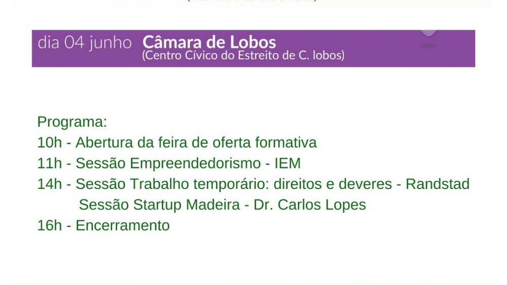 RUMO AO FUTURO PROFISSIONAL – ESTREITO DE CÂMARA DE LOBOS Junho 1, 2018 Élio Pereira Sem comentários Polos de Emprego, Rumo ao Futuro Profissional