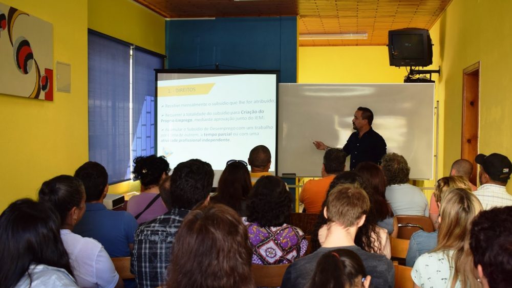 Nesta sessão, que contou com 22 adultos, foram dados a conhecer os direitos e obrigações dos desempregados beneficiários de prestações de desemprego.