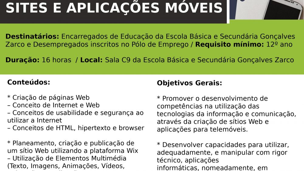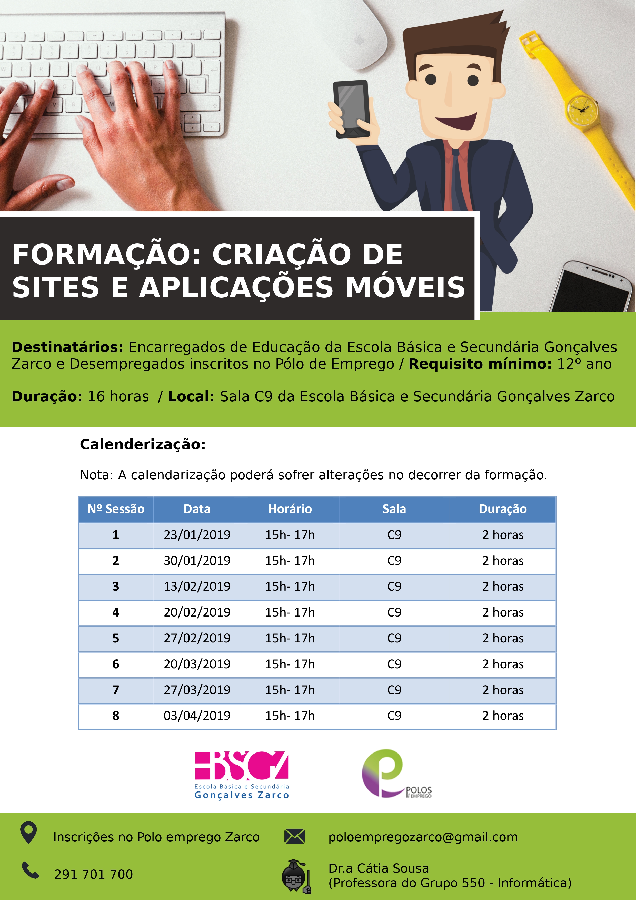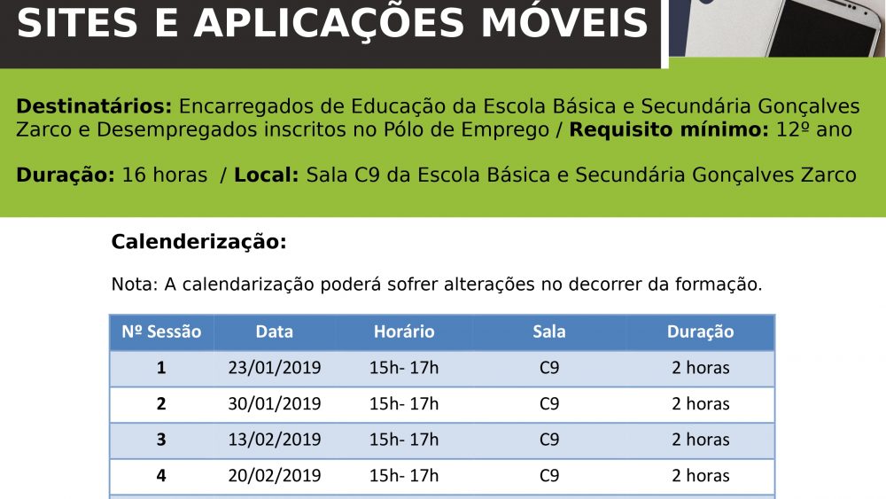 A Escola Gonçalves Zarco, através do seu Polo de Emprego, irá desenvolver uma formação no âmbito da Criação de Sites e Aplicações Móveis destinada a desempregados.