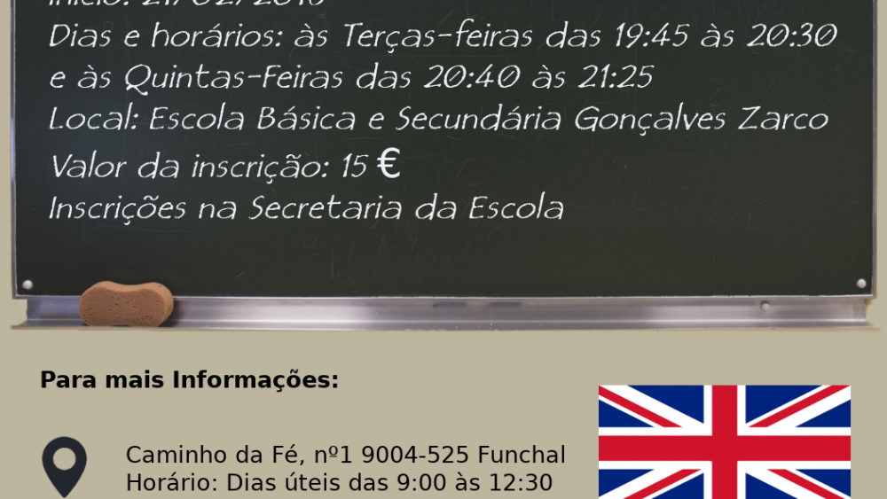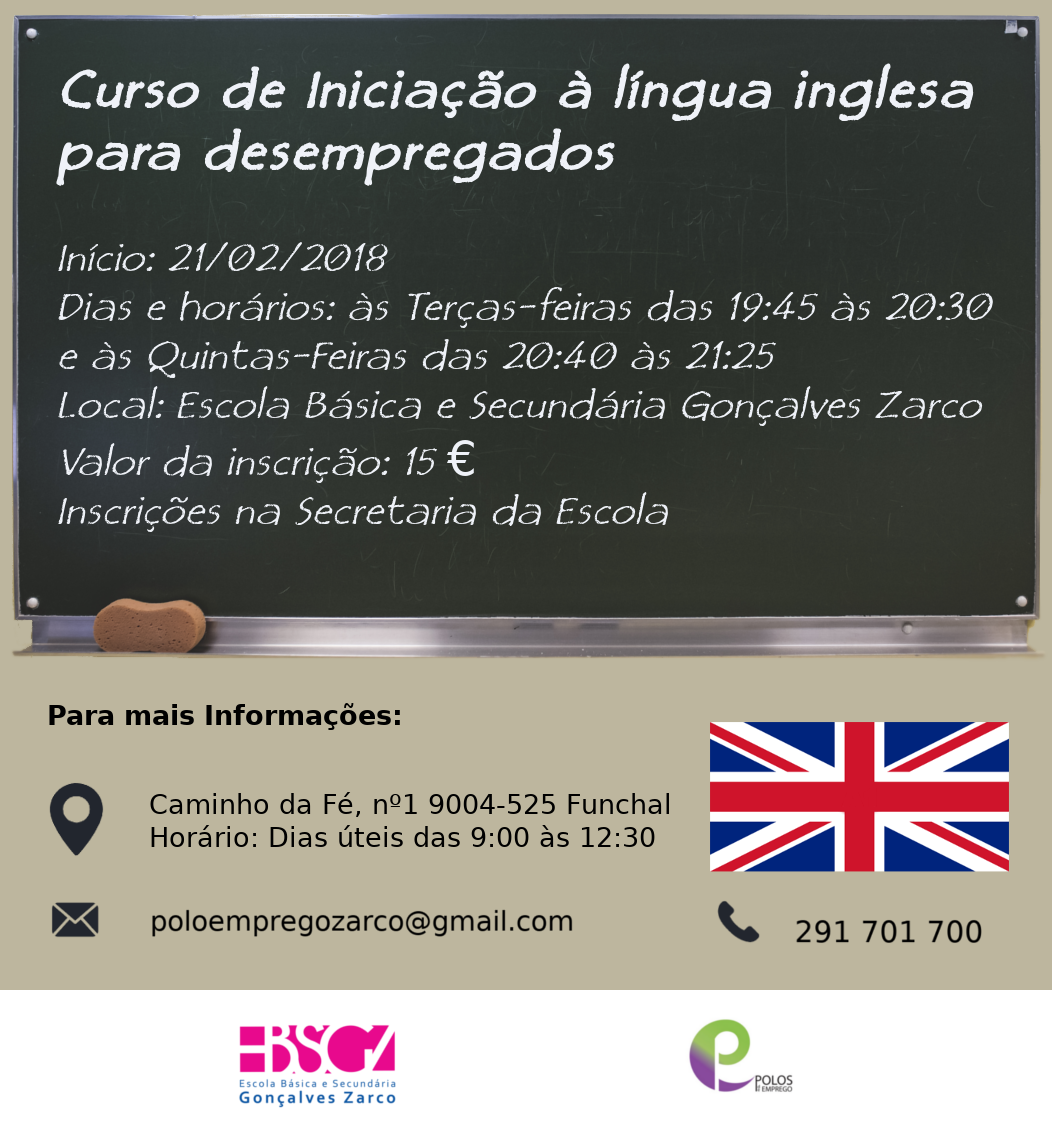 A Escola Gonçalves Zarco, através do seu Polo de Emprego, irá desenvolver uma formação de iniciação à Língua Inglesa destinada a desempregados.