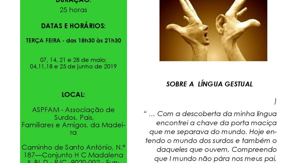 OBS: Este Workshop destina-se a participantes que nunca contactaram com a Língua Gestual Portuguesa.