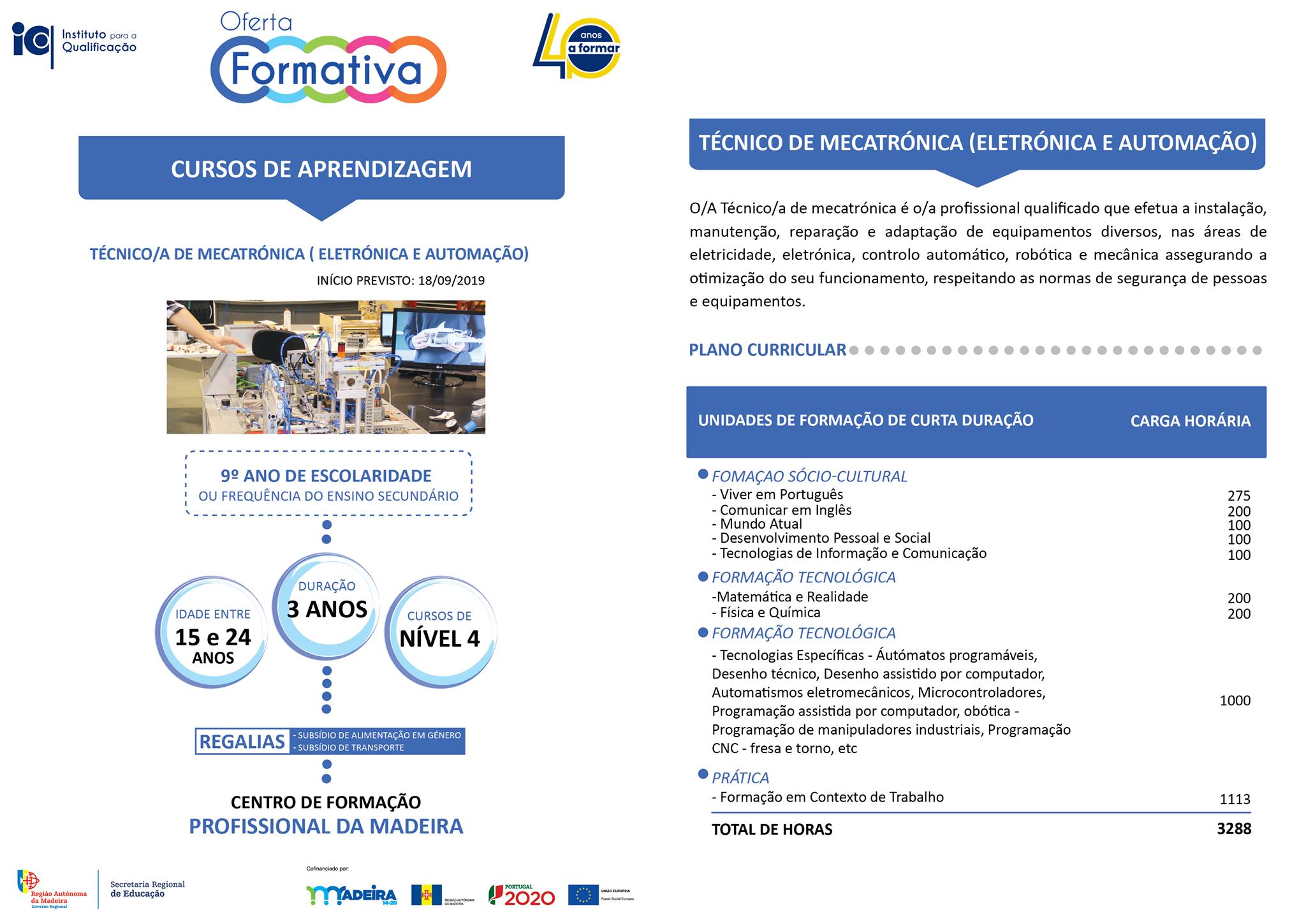 CURSO DE MECATRÓNICA (ELETRONIA E AUTOMAÇÃO) Agosto 7, 2019 Élio Pereira Sem comentários Instituto para a Qualificação