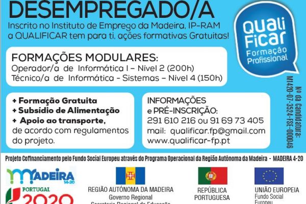 Oferta Formativa Gratuita para pessoas desempregadas, a iniciar já neste mês de setembro 2020 Estas ações são financiadas pelo Governo Regional da Madeira e pelo Fundo Social da União Europeia e destinam-se exclusivamente... Ler mais →