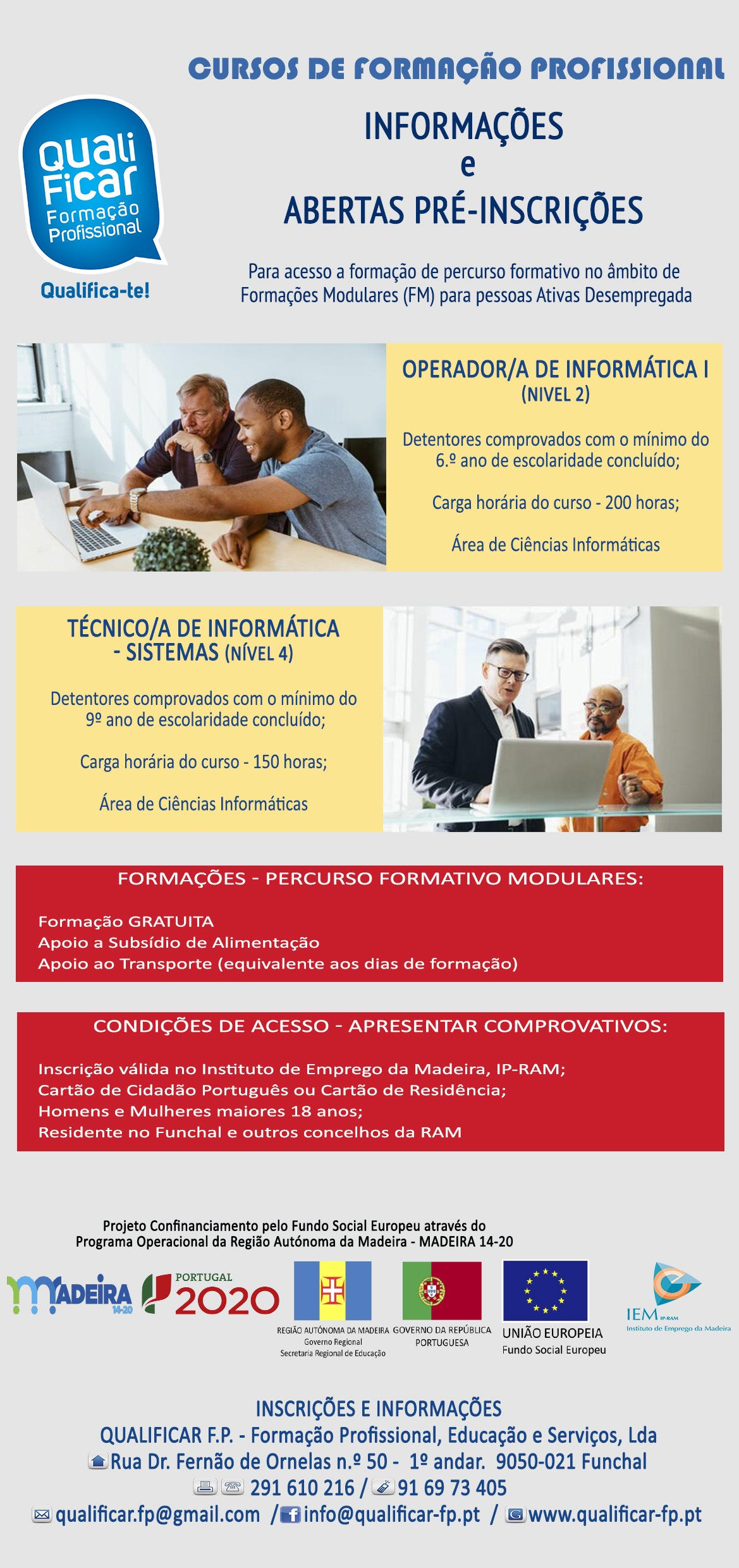 Estas ações são financiadas pelo Governo Regional da Madeira e pelo Fundo Social da União Europeia e destinam-se exclusivamente na tipologia de Formação Modular, tendo o cidadão que apresentar todas as condições descritas: