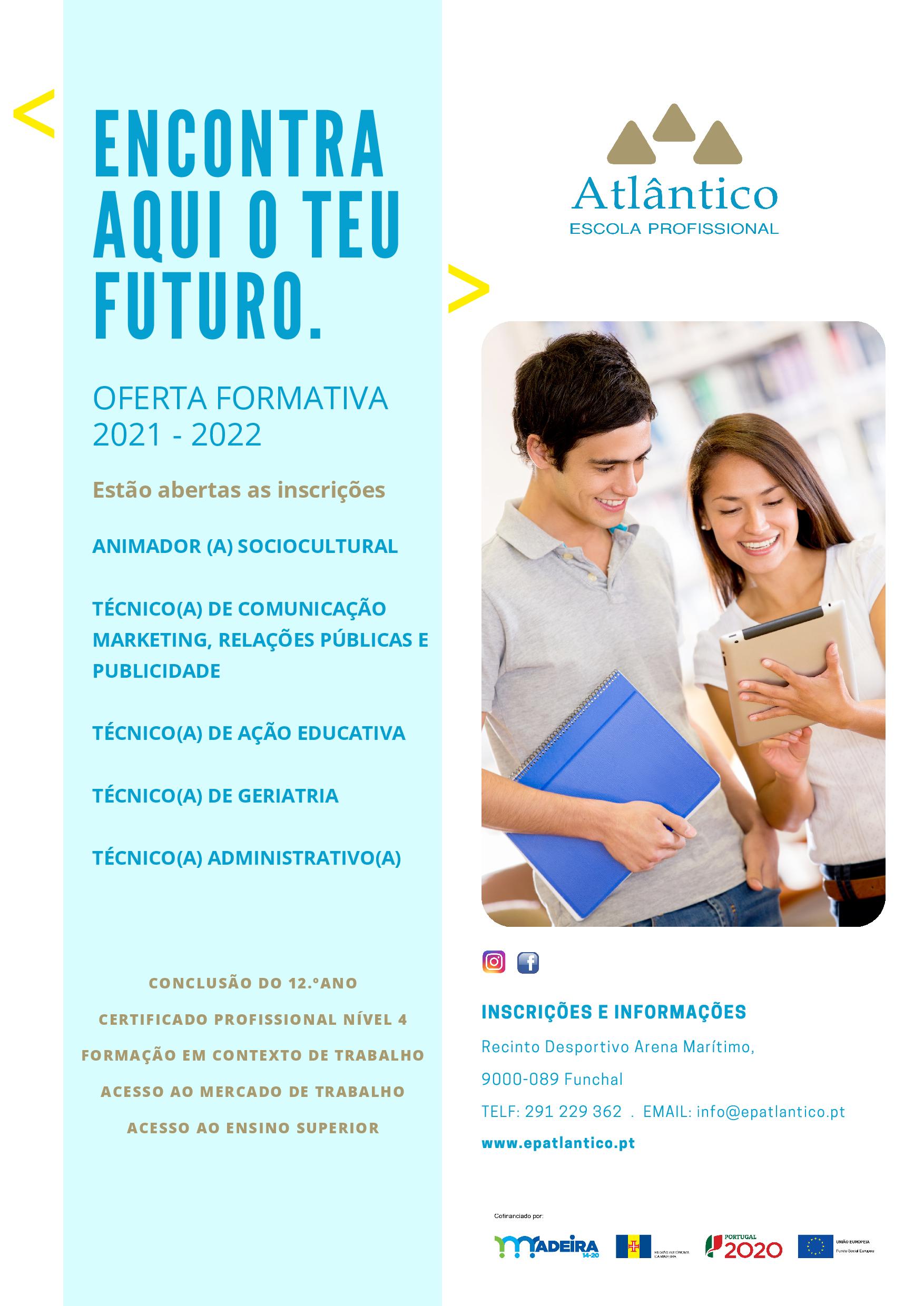 Oferta formativa da ESCOLA PROFISSIONAL ATLÂNTICO para o ano letivo 2021/2022.