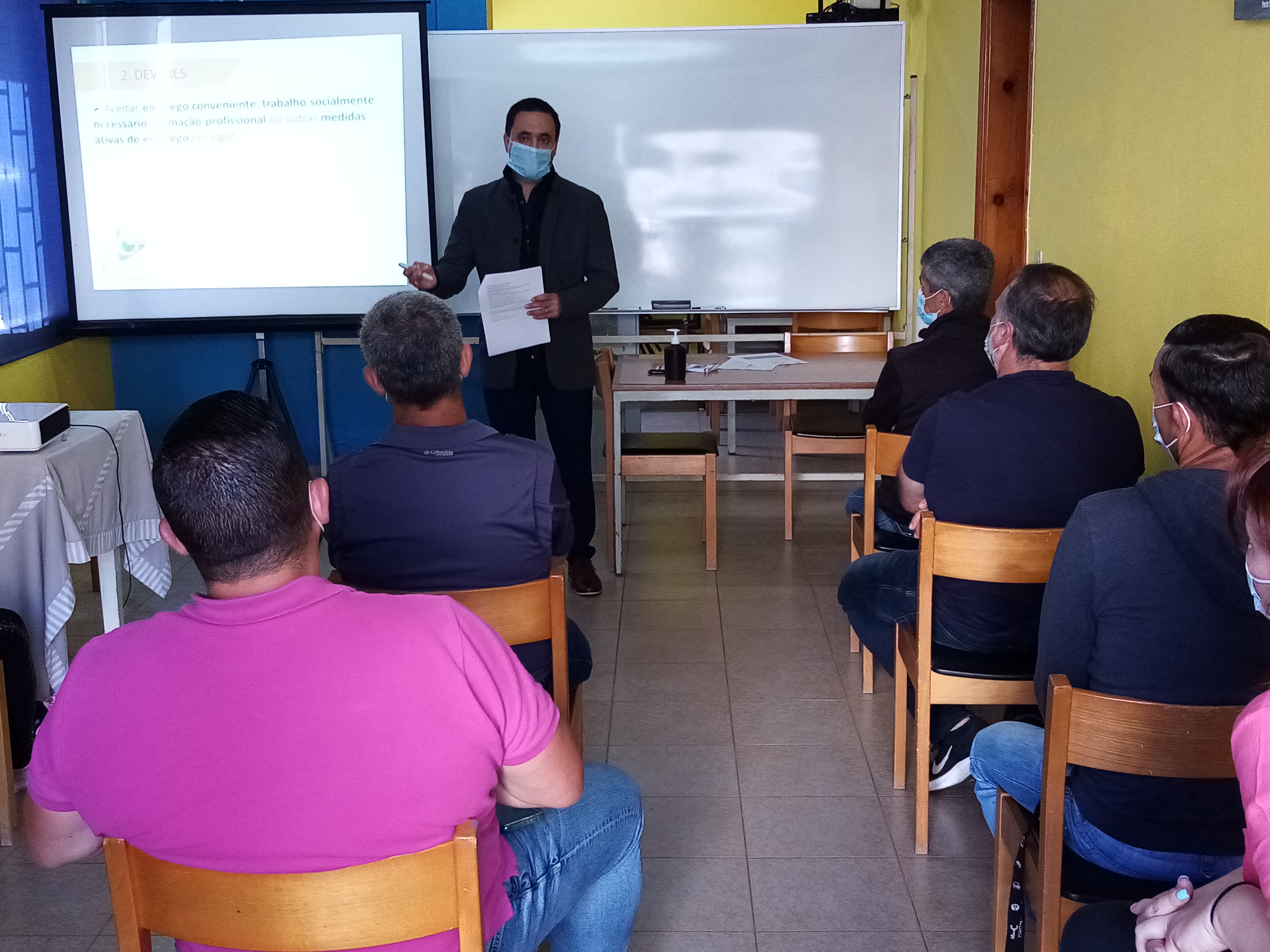 Nesta sessão foram transmitidos, entre outros, o conjunto de intervenções técnicas de avaliação, acompanhamento e melhoria das competências de empregabilidade que os beneficiários de prestações de desemprego auferem na condição de beneficiários, assim como os seus direitos e deveres.