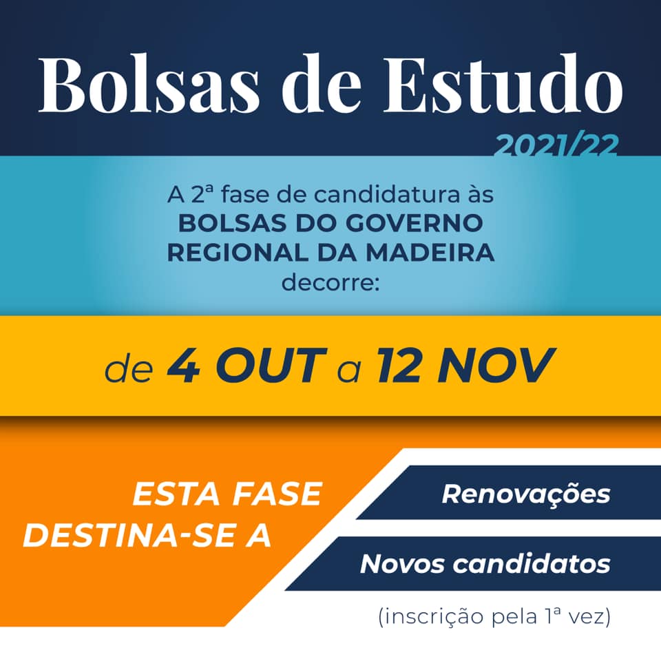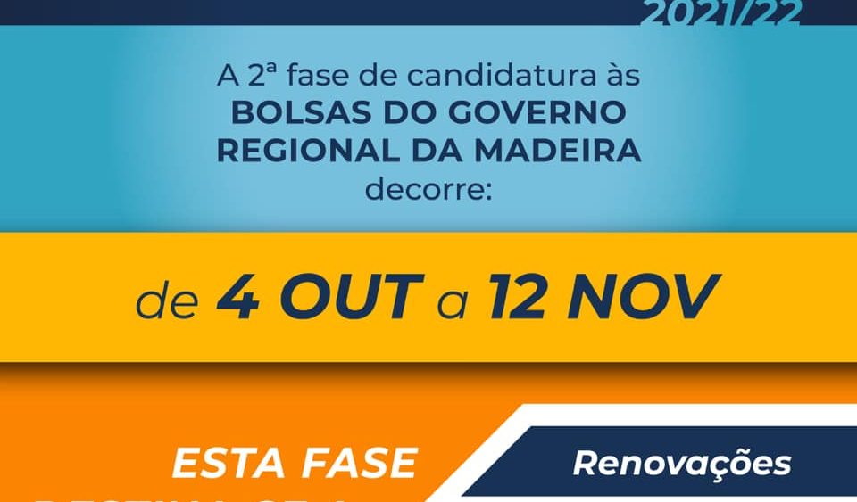 A 2ª fase de candidaturas à Bolsa de Estudos do Governo Regional da Madeira decorre entre 4 de outubro e 12 de novembro.