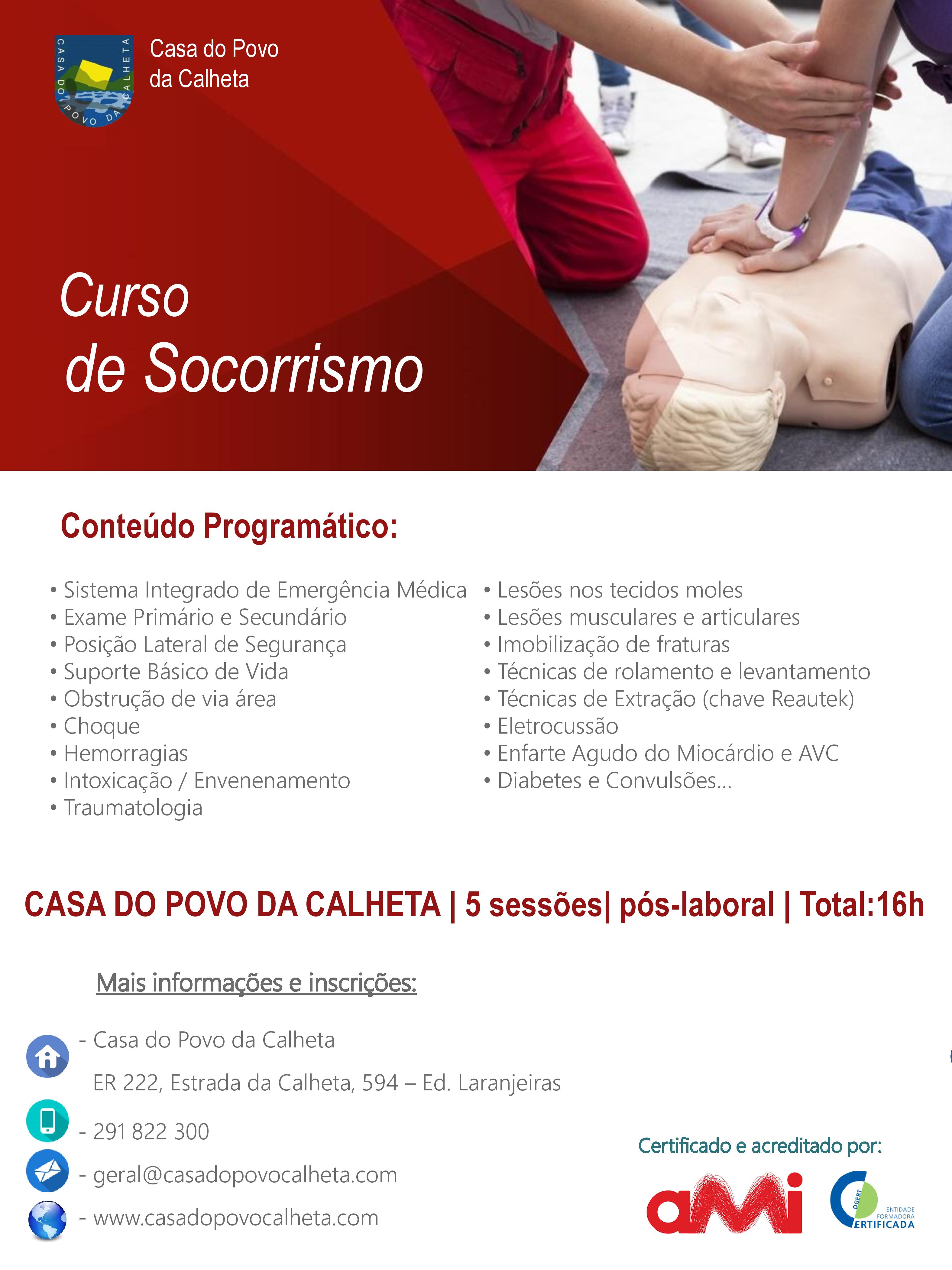 Assim, a Casa do Povo da Calheta, em parceria com a Fundação AMI, irá promover UM CURSO DE SOCORRISMO, certificado e acreditado pela Direção-Geral do Emprego e das Relações de Trabalho (DGERT).