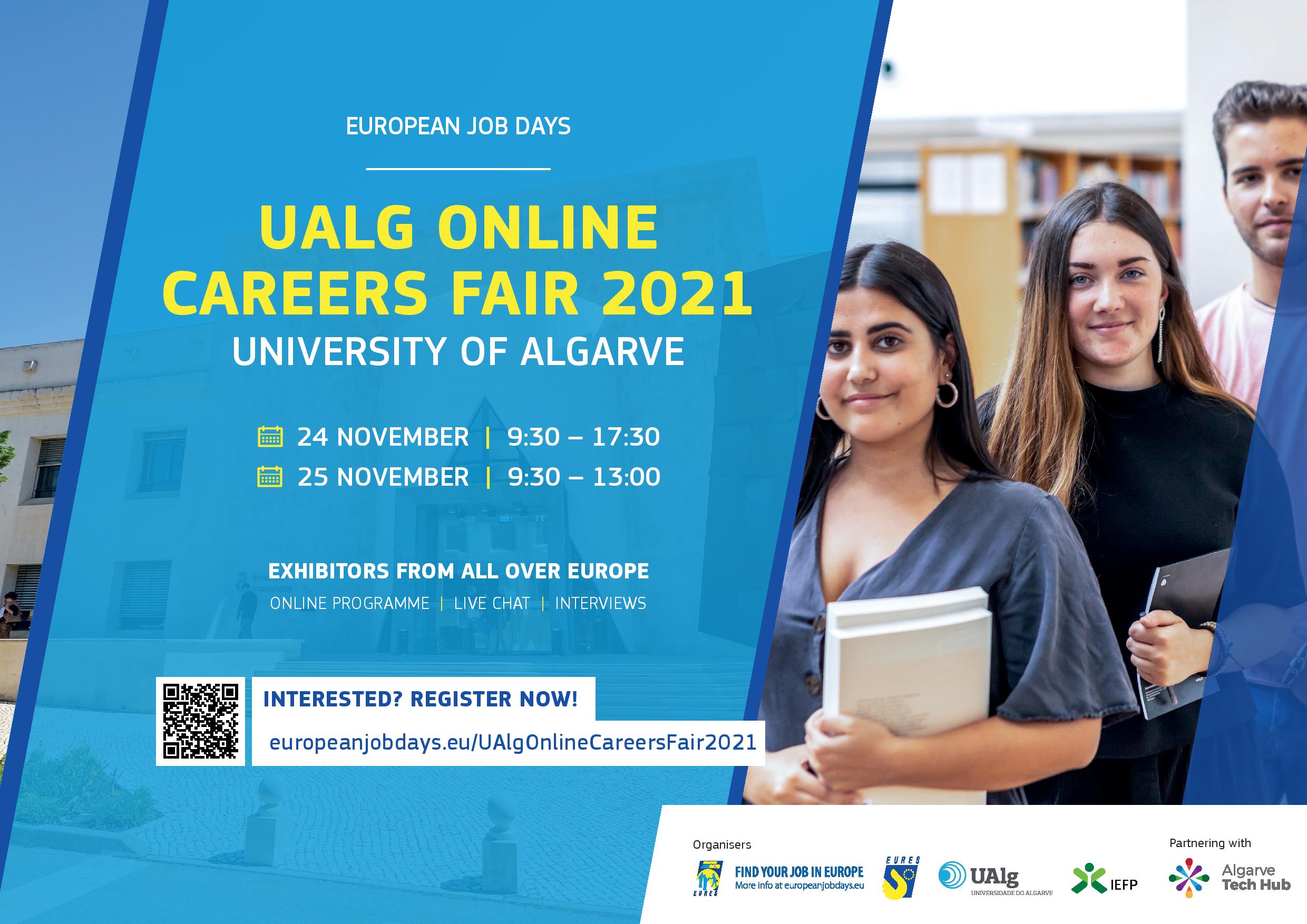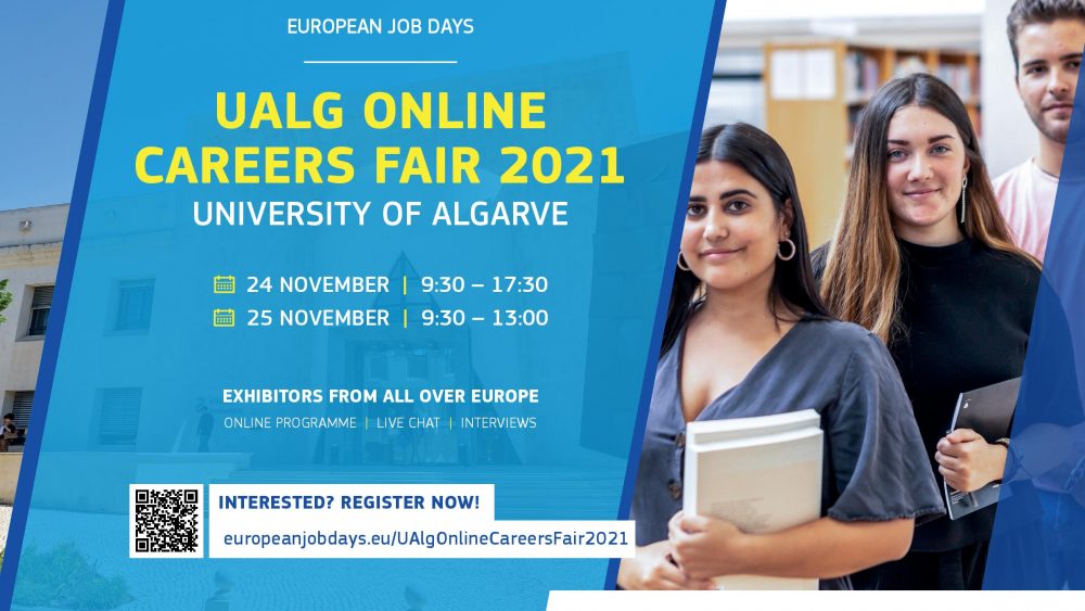 Evento (co)organizado pelo IEFP/EURES Portugal, em colaboração com a Universidade do Algarve: o UAlg Online Careers Fair 2021 (já na sua 3ª edição), que terá lugar já nos próximos dias 24 e 25 de novembro: