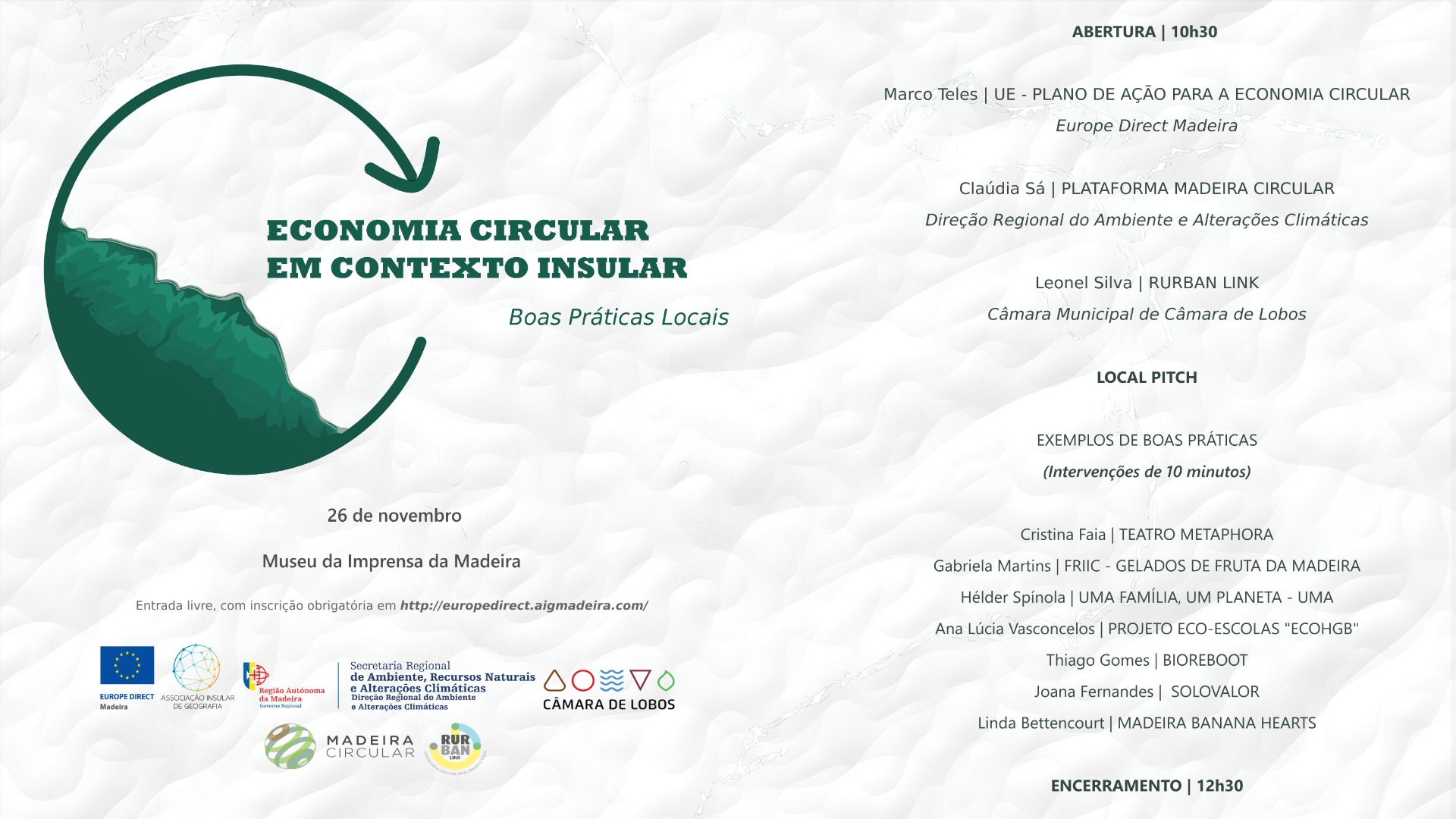 O Europe Direct Madeira, uma das principais ferramentas da Comissão Europeia de contacto com o público a nível local tem a honra de convida a participar no Encontro sobre Economia Circular em Contexto Insular: Boas Práticas Locais.