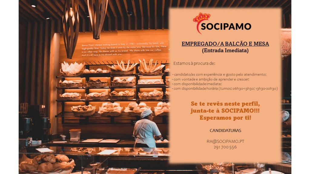 OFERTA DE EMPREGO: EMPREGADO DE BALCÃO E MESA (M/F)