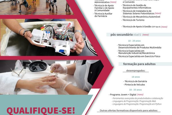 O Instituto para a Qualificação pede para divulgar a oferta formativa que preparou para o ano letivo 2023/2024, quer para jovens, quer para adultos desempregados e empregados. Folhetos: DUPLA CERTIFICAÇÃO... Ler mais →