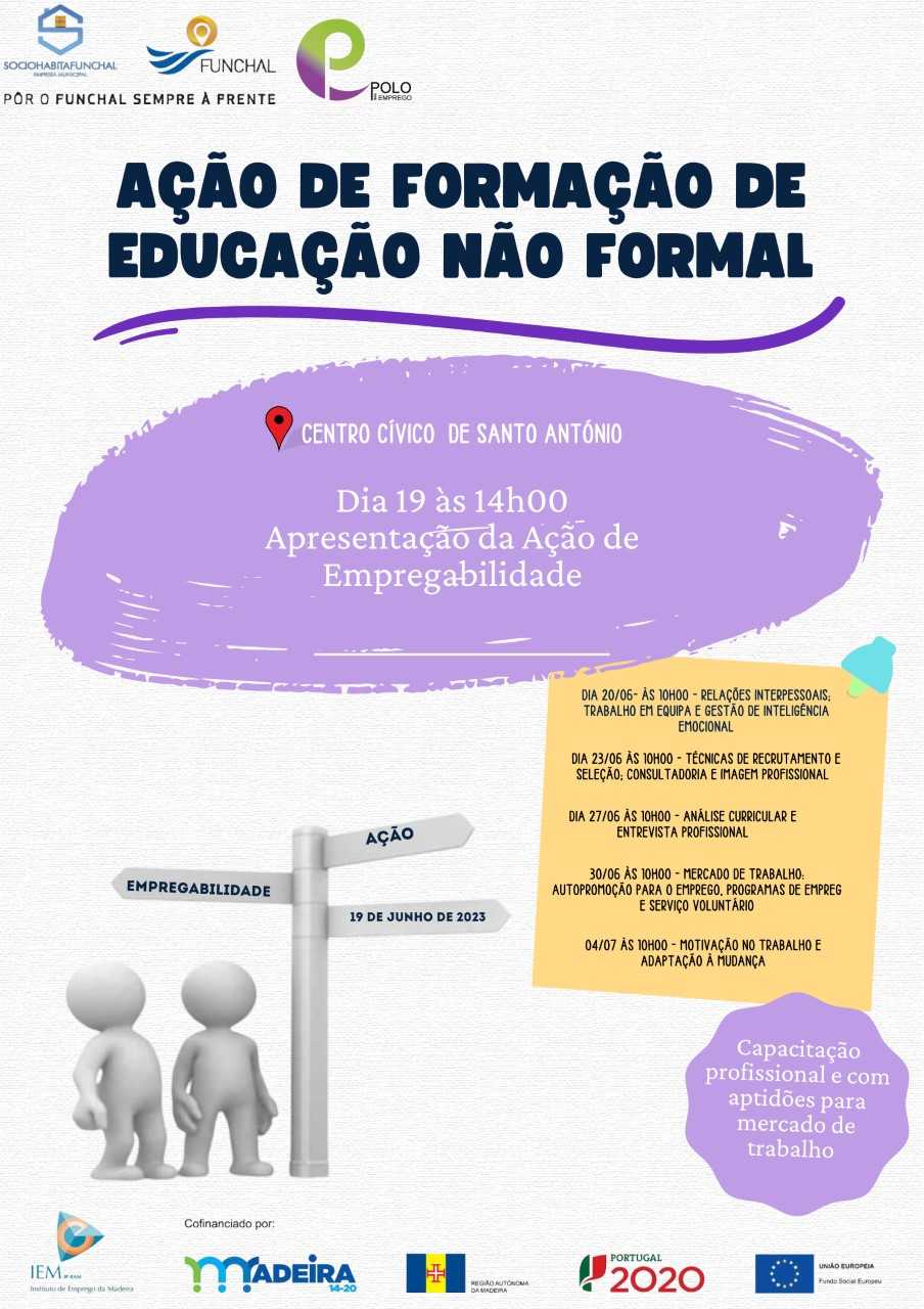 A sessão de apresentação da Ação de Formação de Educação Não Formal está agendada para dia 19 de junho, às 14h00, na Sala da Assembleia da Junta de Freguesia de Santo António/ Centro Cívico de Santo António.