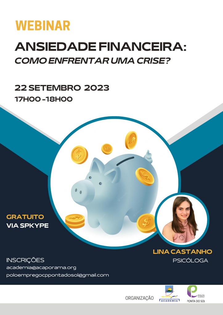 Preocupados com o impacto da crise financeira na vida das pessoas, iremos neste Webinar, explorar os fatores que podem desencadear ansiedade financeira, que repercussões negativas esta ansiedade pode trazer à sua vida, e como lidar com tudo isto.