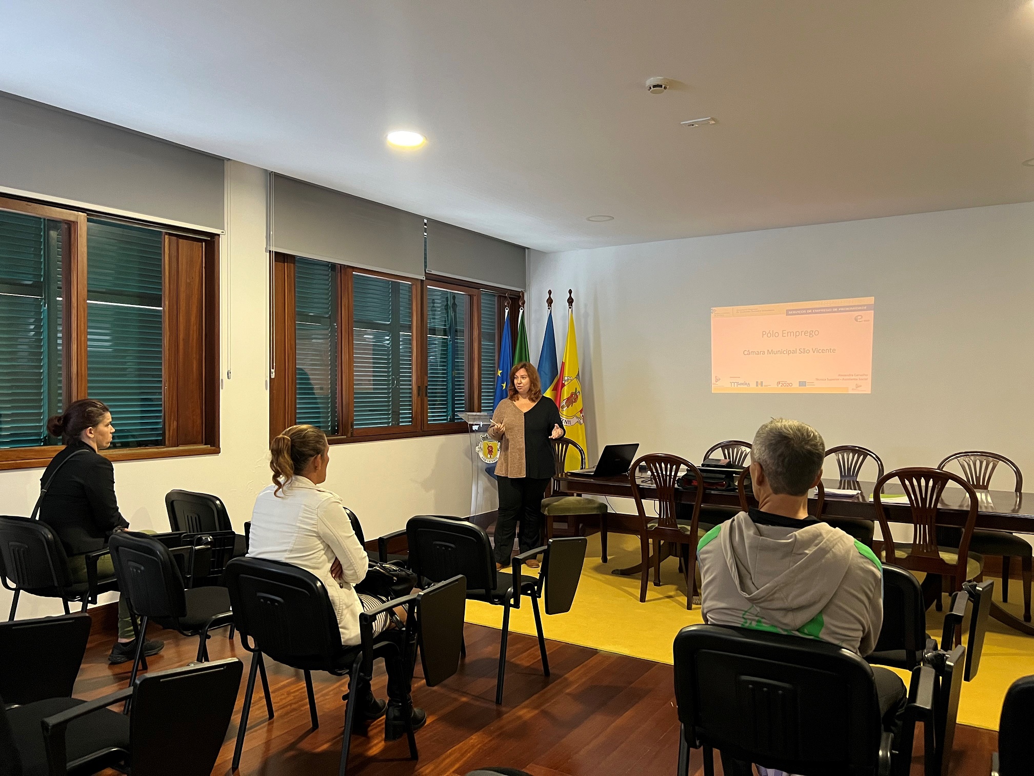 No âmbito das atividades em parceria o Instituto de Emprego da Madeira, IP- RAM, decorreu a 23/10/2023, pelas 11h00m no Salão Nobre da Câmara Municipal de São Vicente, uma Sessão de Procura Ativa de Emprego para utentes inscritos no IEM, residentes nos Concelhos de São Vicente e Porto Moniz.