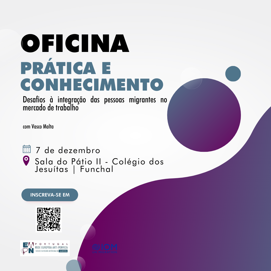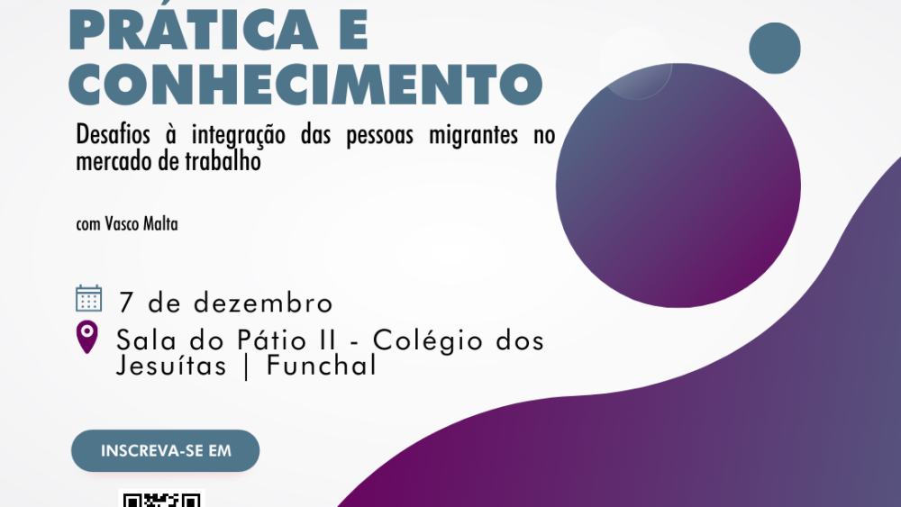 Estão abertas as inscrições para a oficina prática e de conhecimento “Desafios à integração das pessoas migrantes no mercado de trabalho”, que terá lugar no dia 7 de dezembro 2023, na Sala do Pátio II do Colégio dos Jesuítas, Funchal, entre as 9h30 e as 17h30.