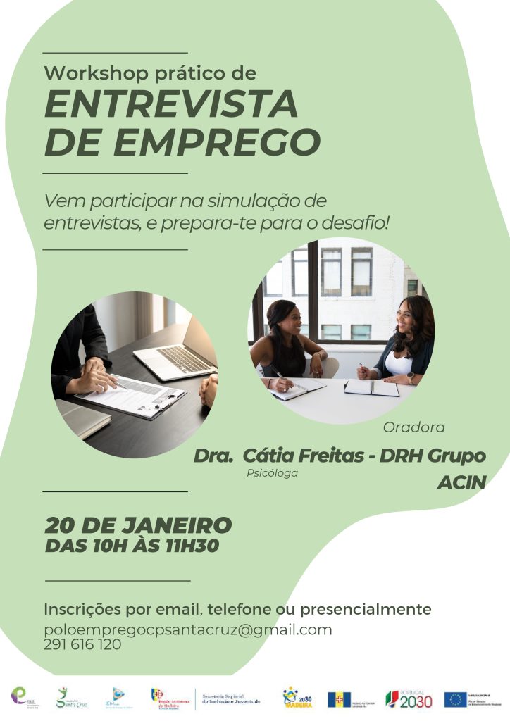 É já este sábado que o Polo de Emprego da Casa do Povo de Santa Cruz, irá receber a Drª Cátia Freitas, Psicóloga, para a realização de um Workshop Prático de Simulação de Entrevistas.
