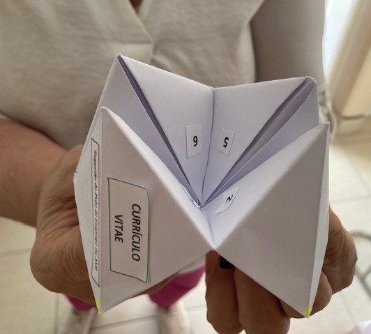 Finalizamos com um jogo em origami, onde constava algumas sugestões a terem em conta na elaboração do currículo.