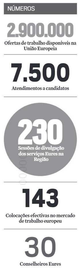 Criada em 1994, a Eures é uma rede europeia de serviços de em­prego, que visa facilitar a mobili­dade dos trabalhadores no âmbito do Espaço Económico Europeu (EEE) (os 27 Estados-Membros da União Europeia, a Noruega, Liechtenstein e a Islândia) e Suí­ça. A nível regional, e de acordo com os dados disponibilizados pelo IEM, ao longo dos anos, atra­vés da conselheira Eures, o IEM contabilizou mais de 7 500 aten­dimentos a candidatos e mais de 230 sessões de divulgação dos ser­viços Eures na Região, tendo re­sultado em 4 486 apresentações a ofertas de emprego comunitárias e 143 colocações efectivas no mer­cado de trabalho europeu.