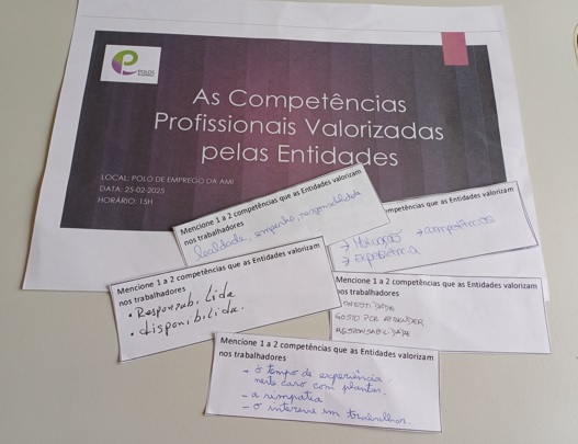 Iniciamos a sessão pedindo aos formandos para mencionar uma ou duas competências que as Entidades valorizam nos candidatos.