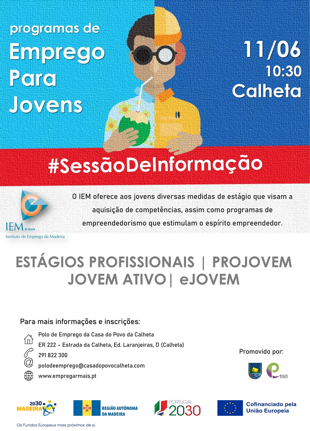 O Polo de Emprego da Casa do Povo da Calheta convida a todos os interessados em participar numa sessão de informação sobre as medidas de emprego que o Instituto de Emprego da Madeira disponibiliza para os jovens.