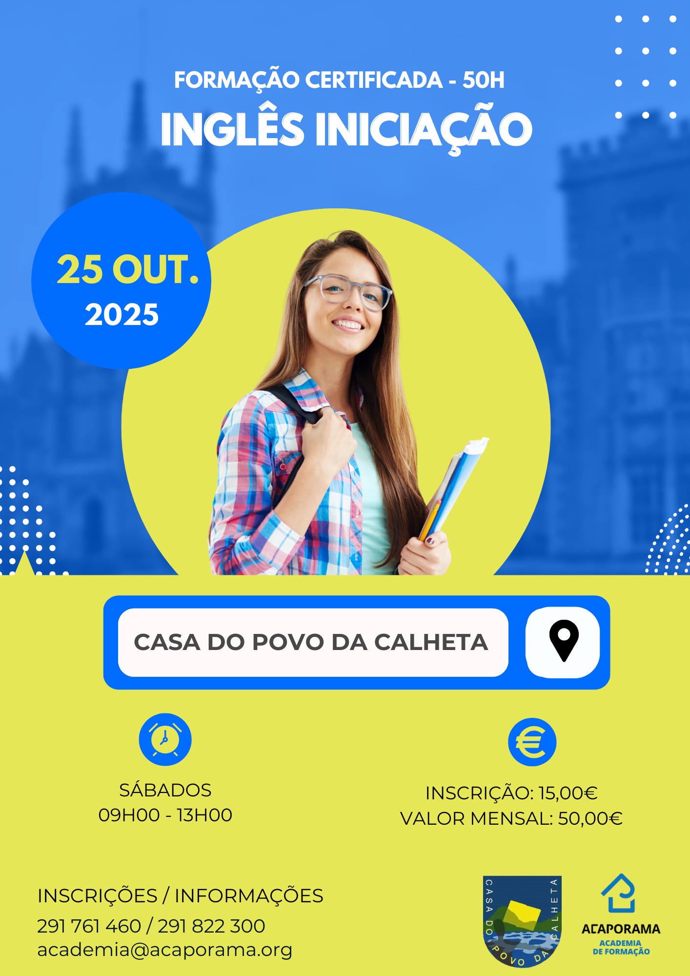Para mais informações, contacte-nos através dos telefones 291 761 460 / 291 822 300 ou dos e-mails academia@acaporama.org e geral@casadopovocalheta.com.