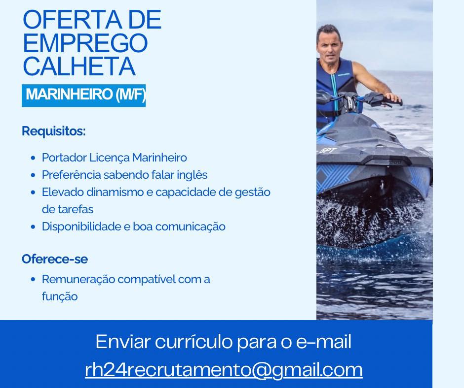OFERTA DE EMPREGO | CALHETA: MARINHEIROS (M/F) Abril 21, 2026 Élio Pereira Sem comentários Empregar +