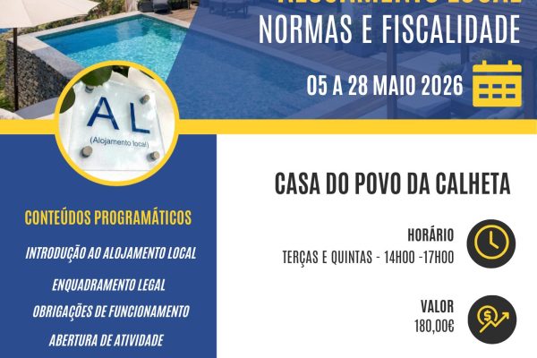 A Casa do Povo da Calheta e a Academia de Formação da ACAPORAMA informam que se encontram a receber inscrições para o workshop de Gestão de Alojamento Local: Normas e... Ler mais →