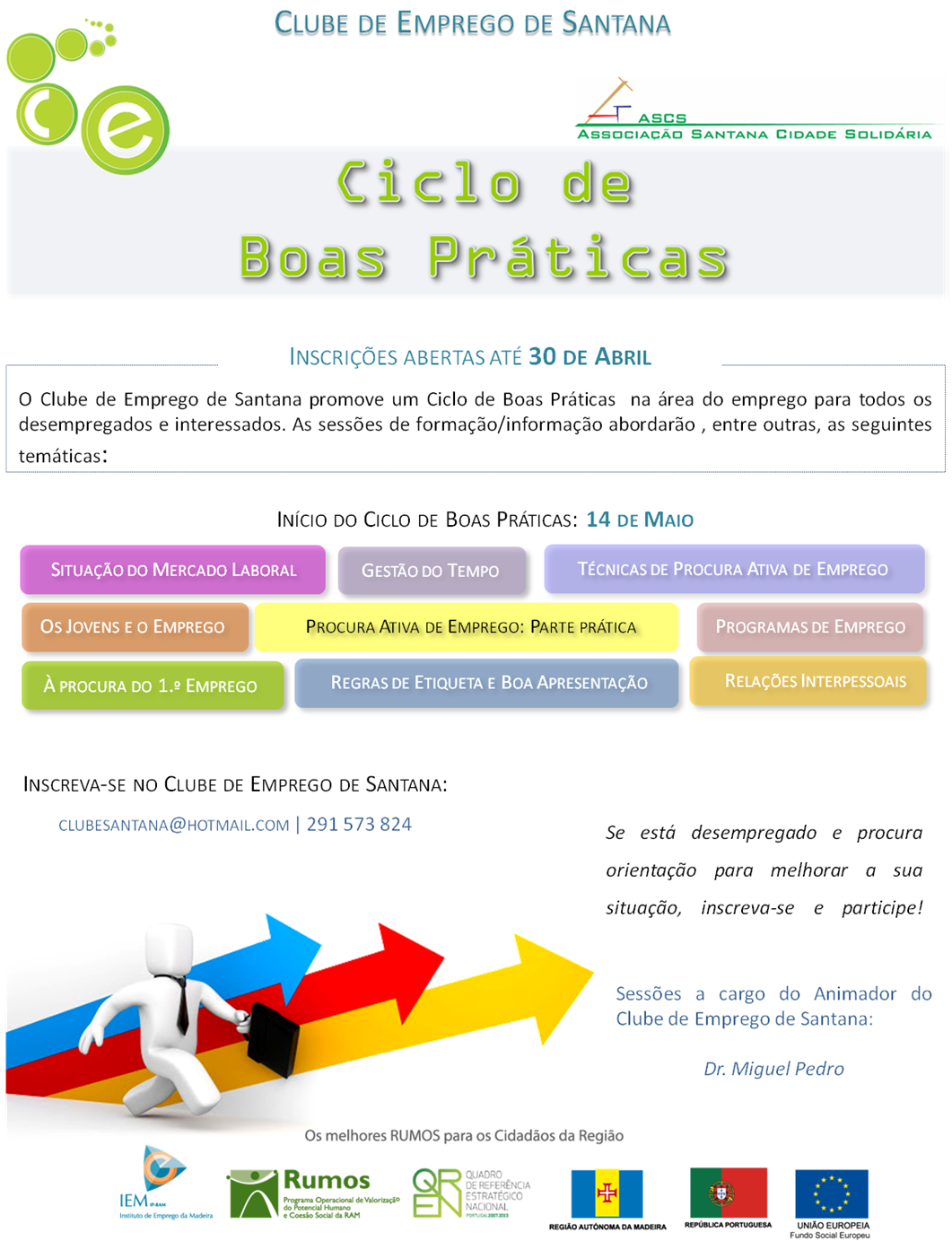 O Clube de Emprego de Santana organiza, a partir do dia 14 de Maio, o Ciclo de Boas Práticas na área de emprego. As inscrições, para os interessados e utentes... Ler mais →