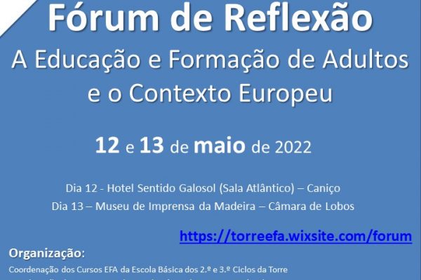 Em nome das coordenações dos Cursos EFA da EB2,3 do Caniço e da EB2,3 da Torre, responsáveis pelo evento formativo: Fórum de Reflexão - A Educação de Adultos e o Contexto... Ler mais →