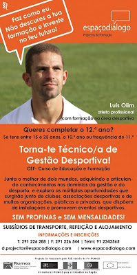 A Espaço Diálogo – Projectos de Formação S.A. pretende desenvolver o Curso de Educação e Formação de Técnico(a) de Gestão Desportiva (Tipo 5), destinado a jovens entre os 15 e... Ler mais →