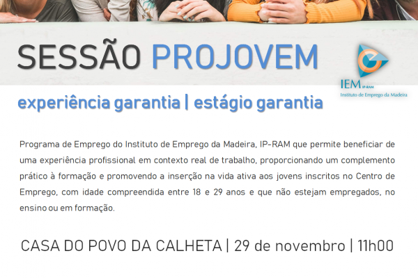Decorreu na manhã de hoje, dia 29 de novembro, a sessão de informação, promovida pelo Polo de Emprego da Casa do Povo da Calheta, sobre o Programa Projovem, programa de... Ler mais →