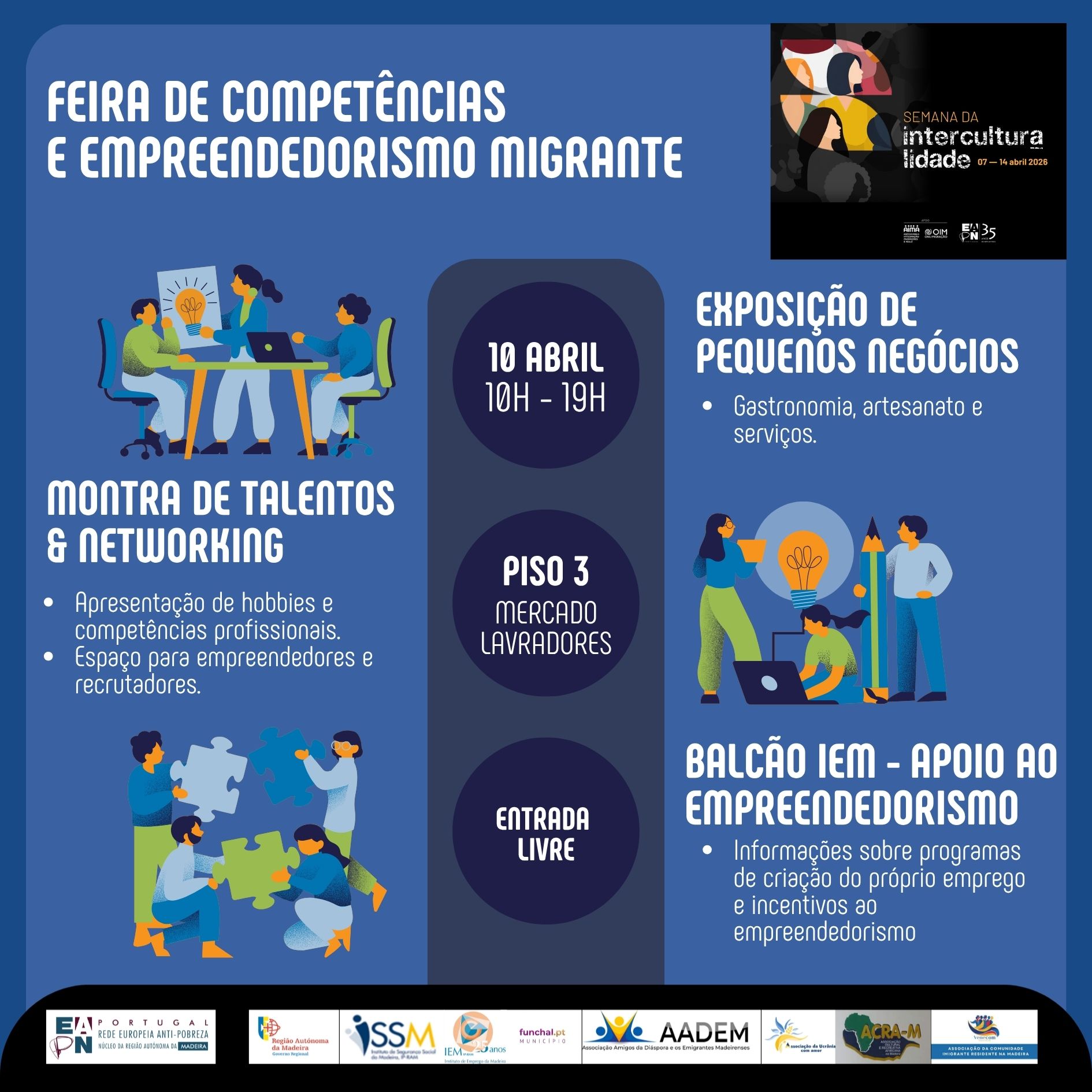 Num mundo cada vez mais globalizado, a Região Autónoma da Madeira afirma-se hoje como um espaço vibrante e profundamente multicultural. É neste contexto de abertura ao mundo que o Núcleo da Madeira da EAPN Portugal – Rede Europeia Anti-Pobreza tem a honra de convidar V. Exa. para visitar e participar na Feira de Competências e Empreendedorismo Migrante.